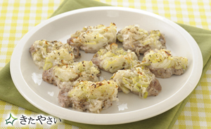 - 魚焼きグリルかオーブントースターの天板にアルミ箔を敷いて1を並べ、2をのせてこんがりと焦げ目がつくまで、約10分焼く。